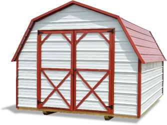 alamo white metal siding w/ rustic red trim & rustic red metal roof